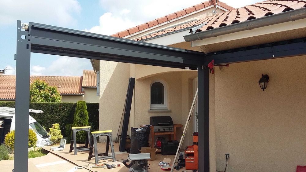 À Saint-Just-Malmont, les propriétaires profitent désormais pleinement de leur terrasse grâce à l’installation d’une pergola équipée de stores extérieurs. Avec sa structure en aluminium (coloris gris 7016) et ses lames blanches, cette solution offre un compromis idéal entre la véranda et le store. C